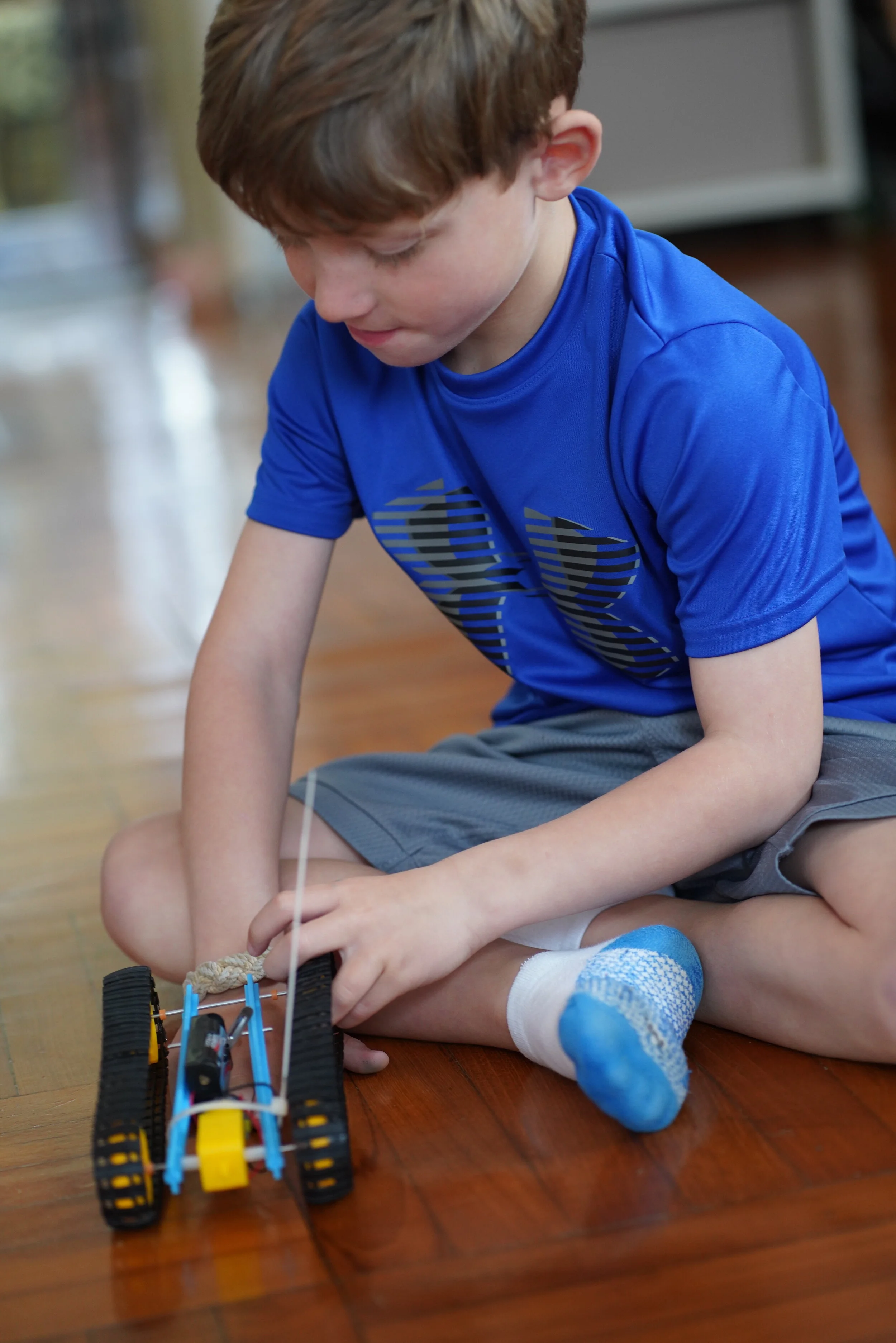 Charlie building the base of his new robot