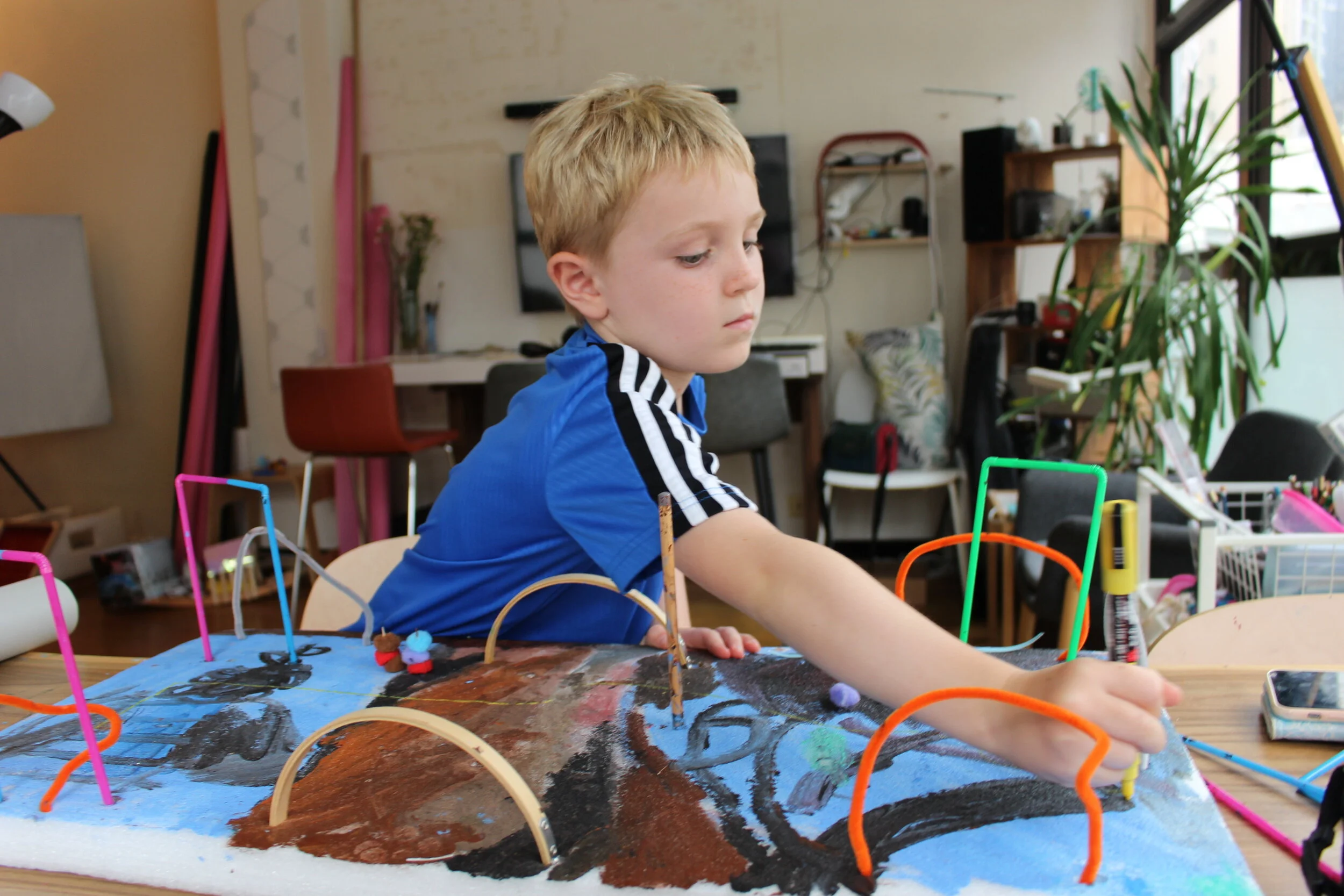 Quinn deciding which colors to choose for his painting